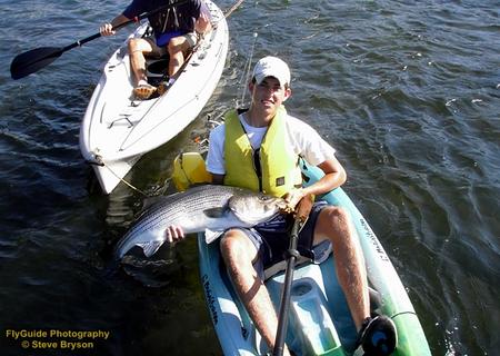 Our Tennessee River striper fishing trips are conducted as float trips and we fish from a bass boat. These trips are available as fly fishing or spin fishing trips. Our priority for these fish is to target them on spin fishing gear due primarily to the different water depths that we have to explore while searching for the bites. But, rest assured that we keep heavy fly fishing gear on board for when they are busting bait on top! We generally have four 9 weight rods rigged with two floating lines and two full sink lines to cover any possibilities when we have fly fishermen on board.